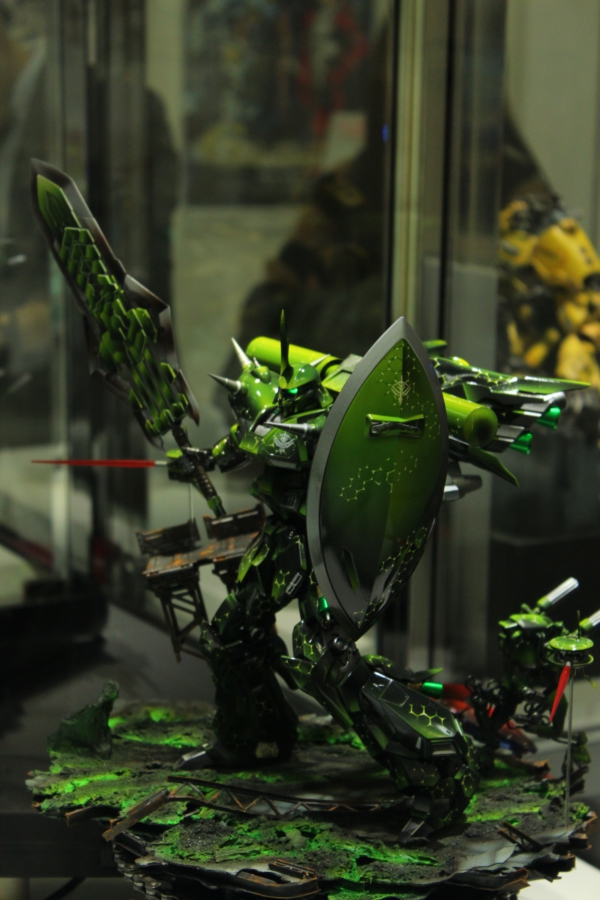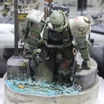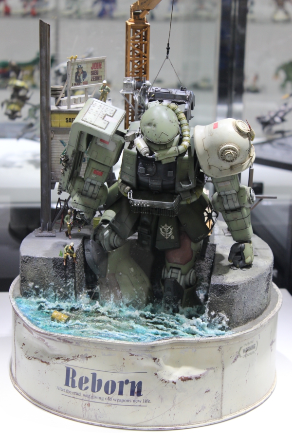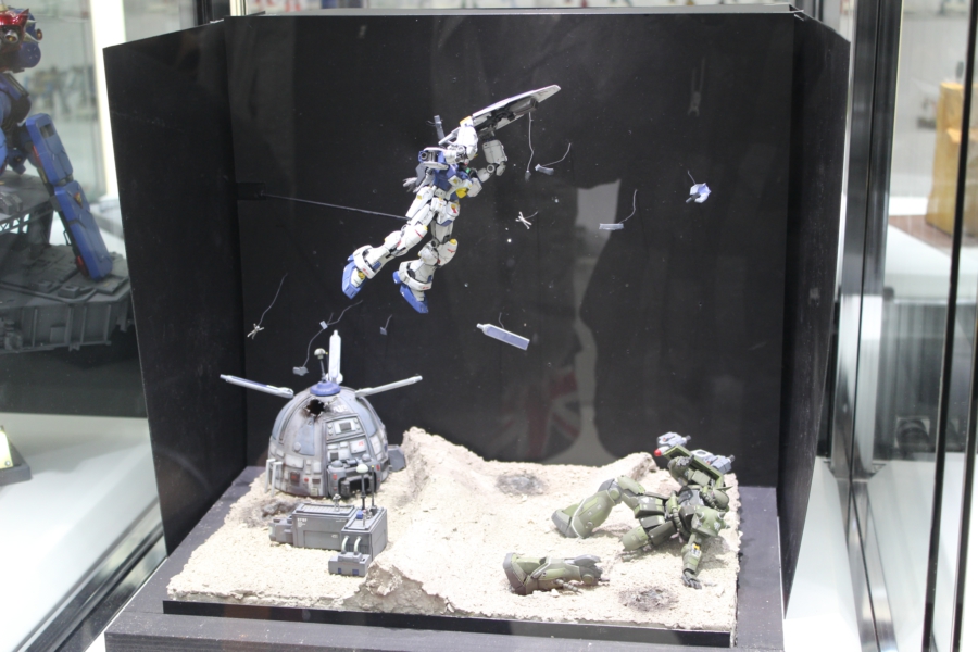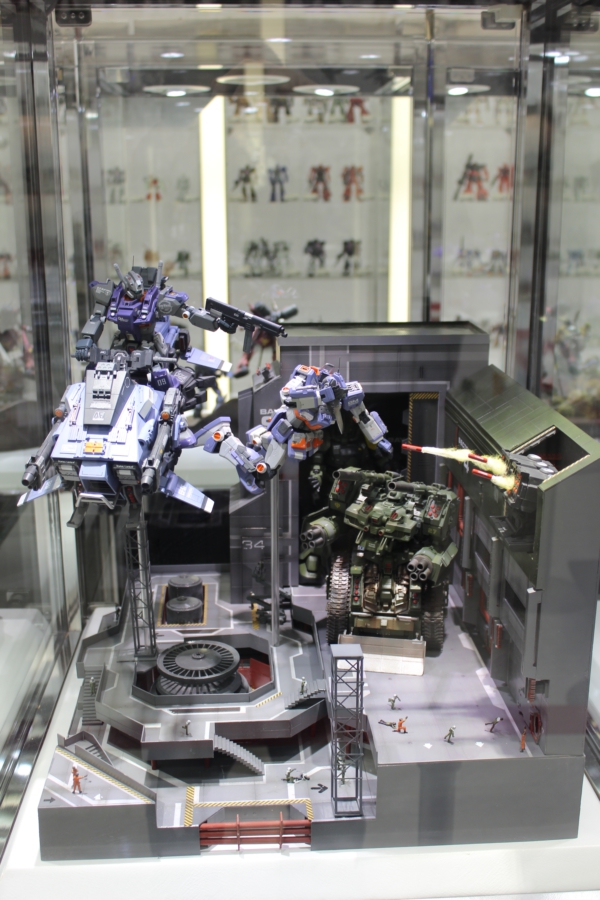 Ovviamente siamo qui per il Gundam Tokyo Front, un museo dedicato totalmente ai robottoni più emblematici dei robottoni giapponesi. L’area occupa l’ultimo piano di un centro commerciale, e si divide in un’area gratuita, dove sono esposti file su file di modellini e di diorami, ed un’area a pagamento che offre una mostra con bozzetti originali, una serie di modellini assemblati a regola d’arte, e una stanza tipo planetario dove viene proiettato un megafilmatone superspacchiuso a 360gradi che ha causato nausea a 3 membri su 5 del gruppo.