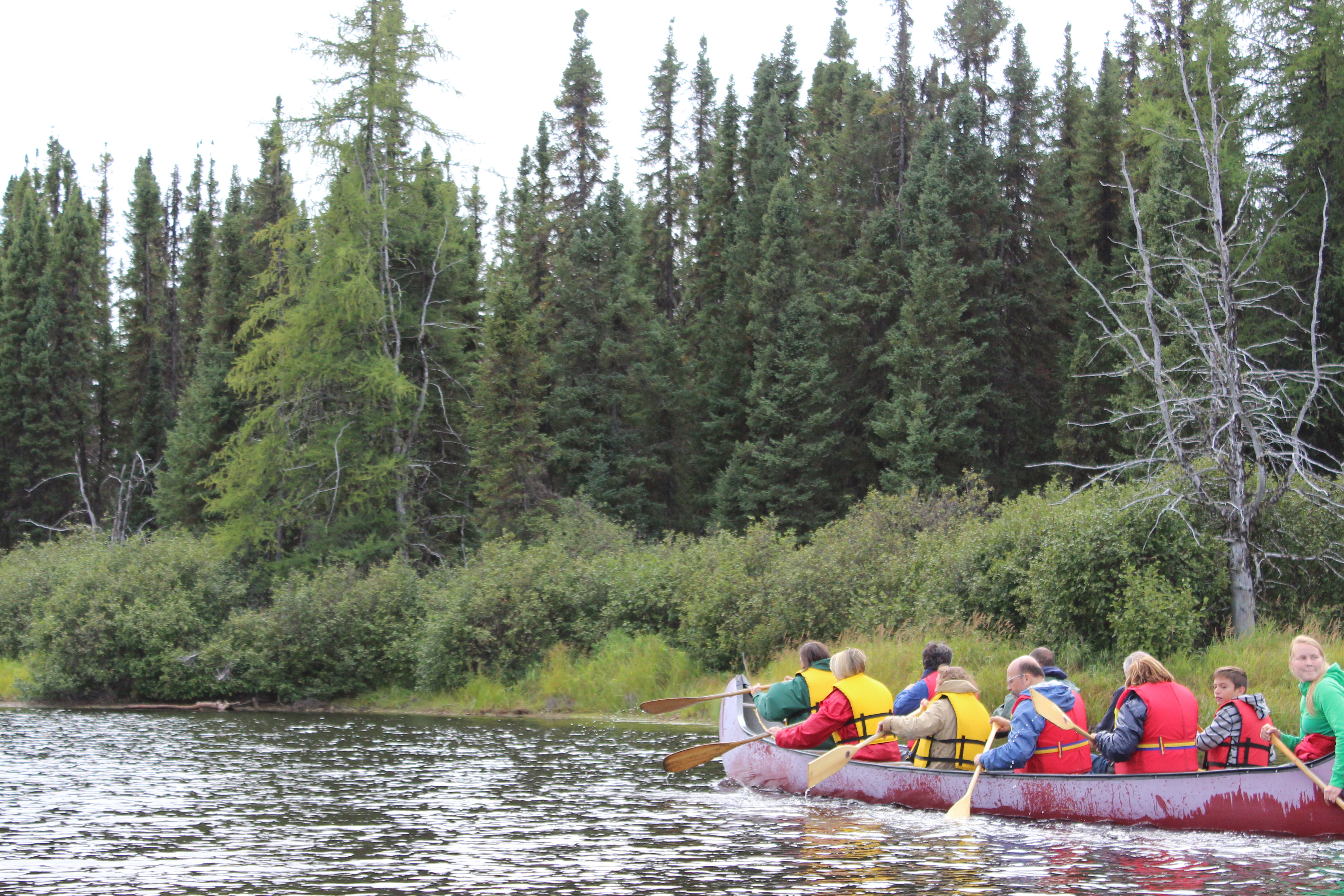 La riserva è puntellata da montagne, laghi e fiumi, nell’ordine dei migliaia, più o meno grossi. C’è una strada che la taglia, con una stazione di servizio a inizio e fine riserva, e dentro niente, a parte qualche raro centro di ristoro/riequipaggiamento tenuto dal personale della riserva; E’ questo luogo il nostro primo stop.