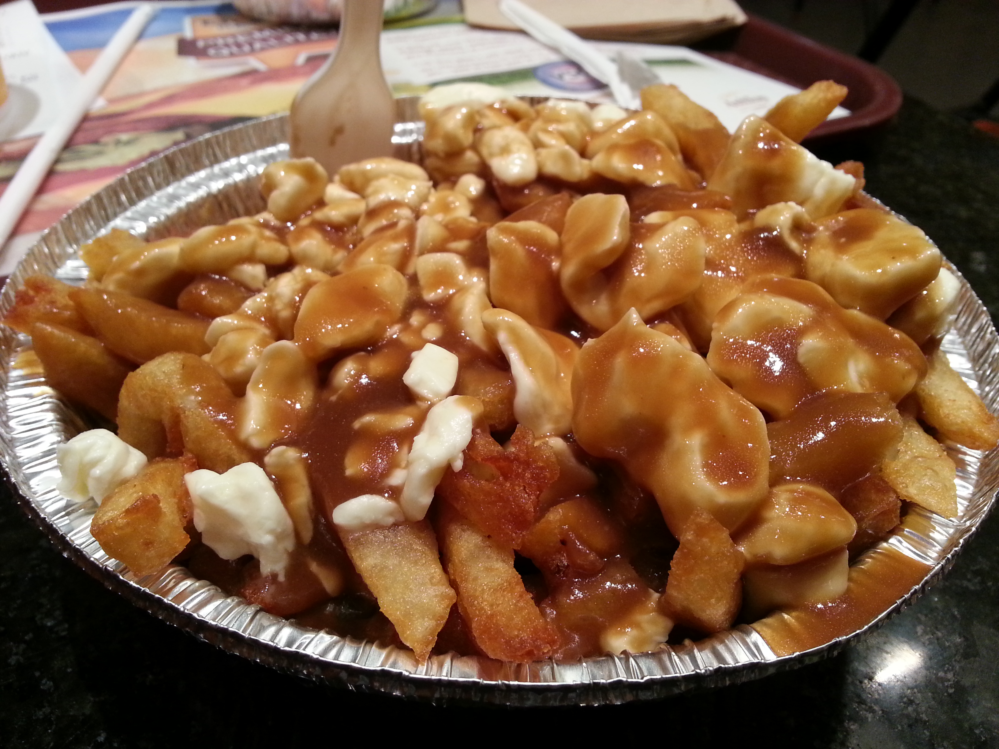 Inoltre per cena abbiamo preso della poutine. Per chi non lo sapesse, si parla di patatine fritte coperte di cheddar coperto della salsetta che accompagna l’arrosto, che quindi scioglie il cheddar crendo un impasto mortale di ciccia vischiosa goduriosa.